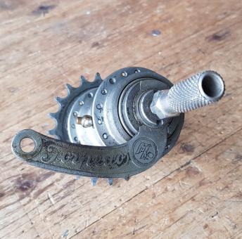 Hier die seltene Gelegenheit, eine solche Nabe für frühe 30er Jahre Halbrenner, Renner und Tourer zu erwerben.