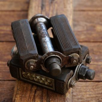 Pedale UNION, Blockpedal für Tourenrad, verchromt, original 30er-50er Jahre, Fußauflage ca. 8,5 x 7,5 cm,