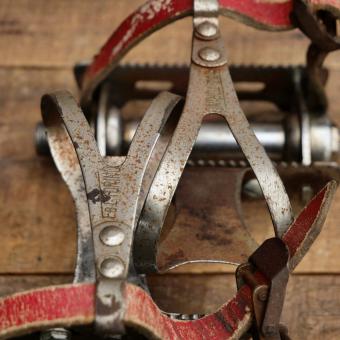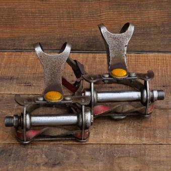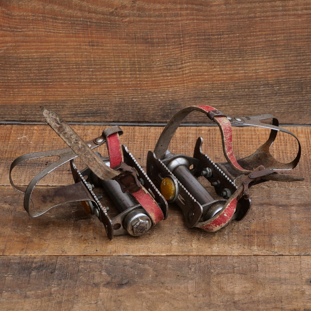 Standardgewinde), inklusive Pedalhaken und Riemen, gebraucht mit Patina, Lager o.k., ein Reflektor fehlt, Zustand