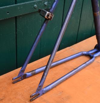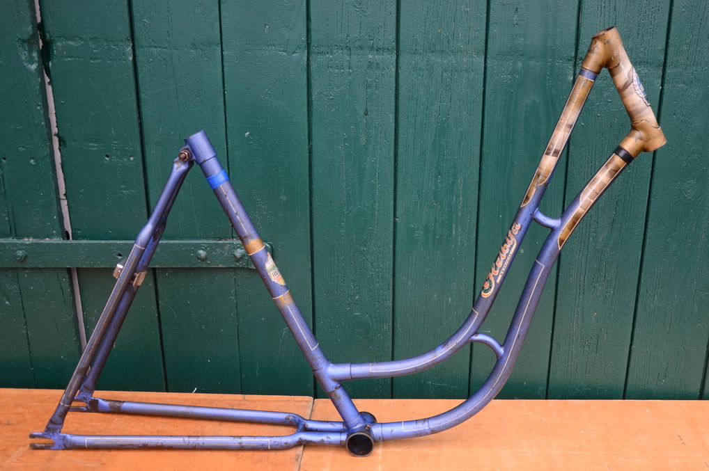 Damenradrahmen "Heibifa", 28 Zoll, 50er Jahre, Rahmennummer 11XXX, Originallack in blau metallic, mit Hebie-Schloß und Schlüssel. Ideal zum Aufbau eines Fahrradklassikers nach eigenen Wünschen.