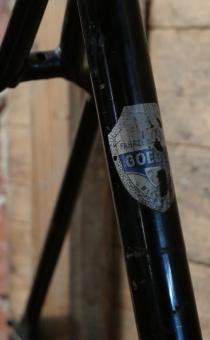 Fahrradrahmen Goebel, Herrenausführung speziell für Hilfsmotor (Lutz), 26 Zoll Ballon, 1950er J., Originallack schwarz, Goldlinien, Rahmenhöhe 51 cm, Rahmennummer 583XXX, gebraucht mit schöner Patina, Zustand gut, siehe Fotos
