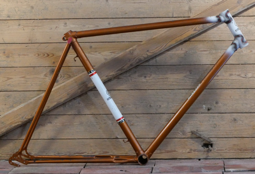 Fahrradrahmen DÜRKOPP, 26 Zoll, Herrenausführung für Sportrad, Ende 50er J., orangebraun-metallic/