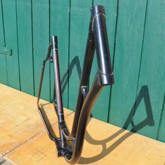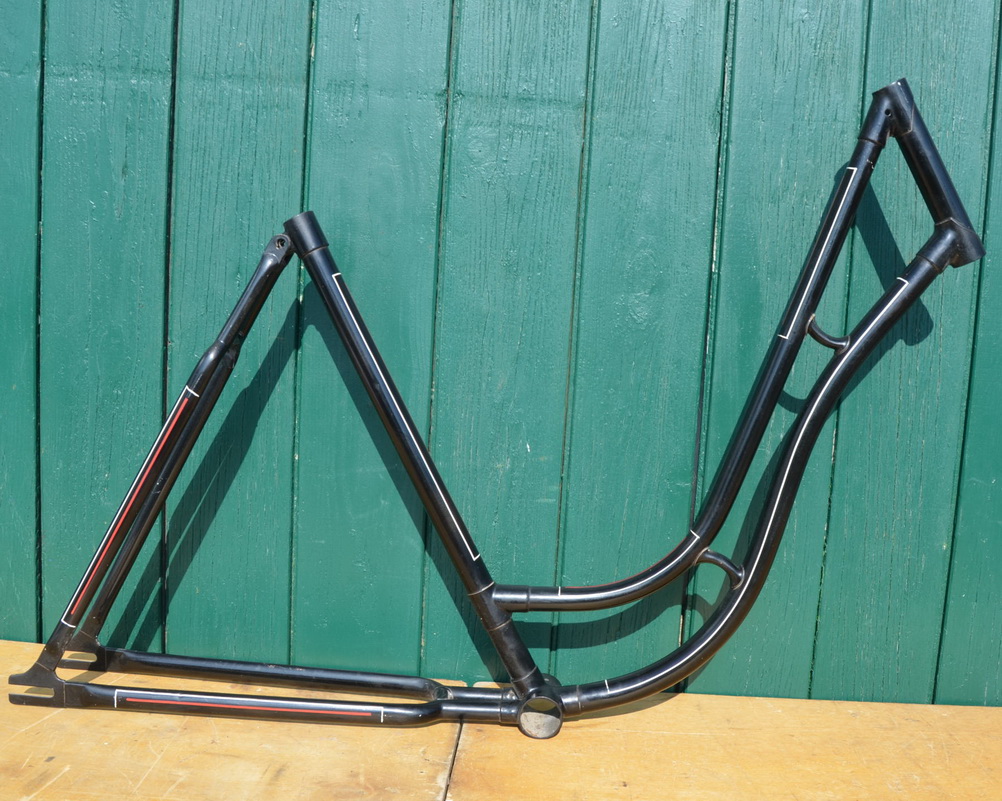 Dieser Rahmen wurde von Jahrzehnten abgestrahlt, neu lackiert, handliniert aber nie aufgebaut. Ein paar lagerungsbedingte, kleine Kratzer können vorhanden sein. Ansonsten aber eine unschlagbar günstige Möglichkeit, einen bereits aufgearbeiteten, frühen Rahmen zu neuem Leben zu erwecken!