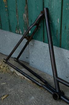 Fahrradrahmen "UNBEKANNT", Damenausf., schwarz, 28 Zoll , RH=56cm, 30er J., ohne Gabel u. Tretlager