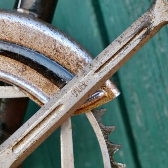 Rahmennummer 2182XXX, Einbaumaß 112 mm, BSA-Keillager, Kettenblatt 47 Zähne, Kurbeln BAUER gemarkt, inkl. Träger