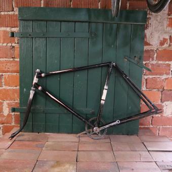 Fahrradrahmen "NSU" 28 Zoll, Herrenausführung mit Tretlager und Steuerkopfschild, Flügellinierung, Rahmenhöhe 56 cm, Rahmennummer 064XXX