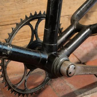 Linien weiß, Rahmenhöhe 56 cm, Einbaumaß 114 mm, mit Glocken-Lager, Kettenblatt 46 Zähne, Rahmennummer 1762XXX,