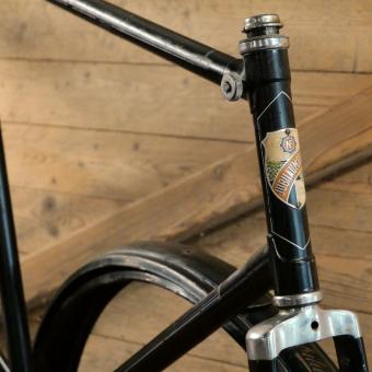 Fahrradrahmen NF Jubiläumsrad, Herren, für Ballonrad, 26 Zoll, Stahl, 30er J., schwarz, Linien blau/weiß,