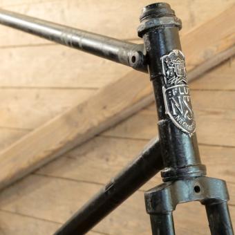 Fahrradrahmen NSU Flux, für Tourenrad, Herren, 28 Zoll, Stahl, 40er J., schwarz, Linien silber, Rahmenhöhe