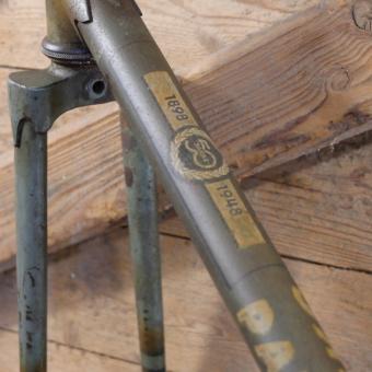 Fahrradrahmen PATRIA WKC, für Sportrad, 28 Zoll, Stahl, 1948, grau-grün, Linien blau, Rahmenhöhe