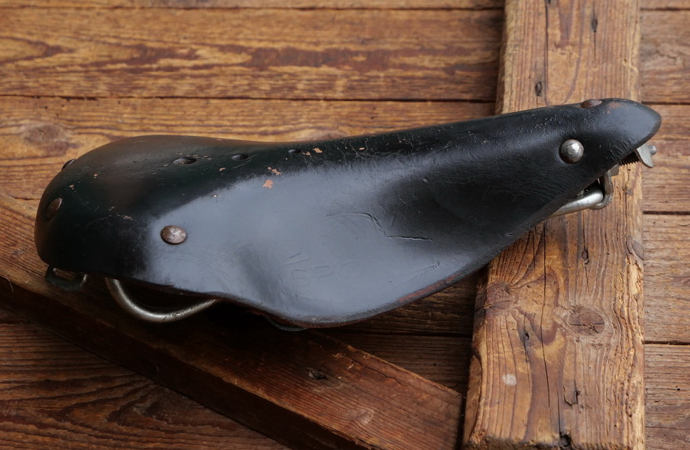 Sattel SPORT 05, für Renn-bzw. Sportrad, Leder, schwarz, Gestell verzinkt, original DDR 60er/70er Jahre, Länge