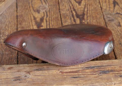 Sattel WITTKOP, Damen, Leder, hellbraun, verzinkt, original 50er/60er Jahre, für Sportrad, Breite ca. 18 cm, Länge ca.