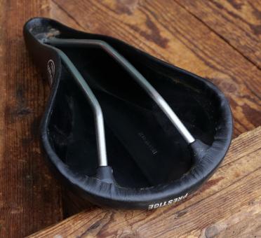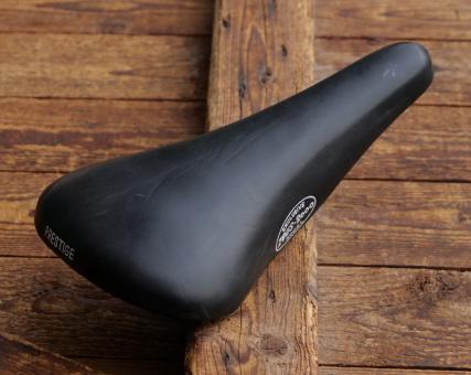 Sattel ZEUS 2000 Prestige, für Rennrad, spanisch, Leder, schwarz, Gestell verchromt, original 70er/80er