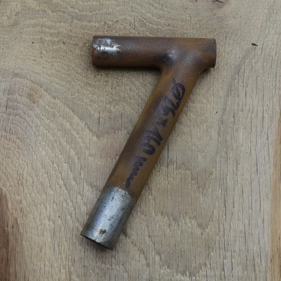 Winkelsattelstütze, Durchmesser: 26 mm, Länge: 160 mm, gebraucht, orig. 10-40er Jahre, Zustand siehe Bilder.