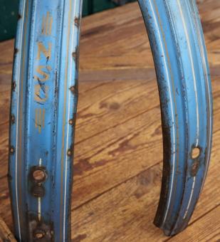 Schutzbleche Satz NSU, 26 Zoll, Damenausführung, 50er J., blau-metallic, Linien weiß/gold, gebr.