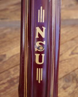 Schutzbleche Satz NSU, 26 Zoll, Herrenausführung, 40er/50er J., weinrot, Linien gold, Breite 60 mm, gebraucht mit sehr schöner Patina, Zustand gemäß Fotos.
