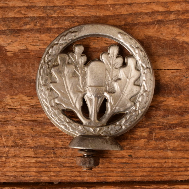 Schutzblechfigur EICHENLAUB - passend für jedes Rad, Alu Druckguss, orig. Altbestand 30-40er Jahre, Zustand siehe Bild