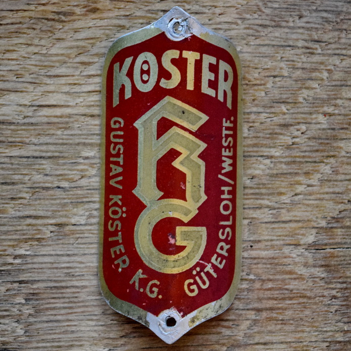 Steuerkopfschild KÖSTER, 50er Jahre, Originalschild aus Sammlungsbestand, Lochabstand 64 mm