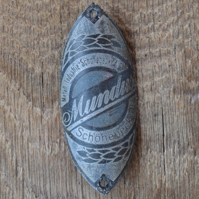 Steuerkopfschild MUNDUS, 30er Jahre, Originalschild aus Sammlungsbestand, Lochabstand 71 mm