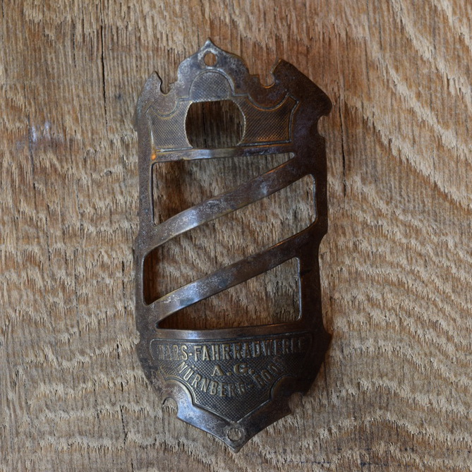 Steuerkopfschild Mars-Fahrradwerke, 10er Jahre, Originalschild aus Sammlungsbestand, Lochabstand 78 mm