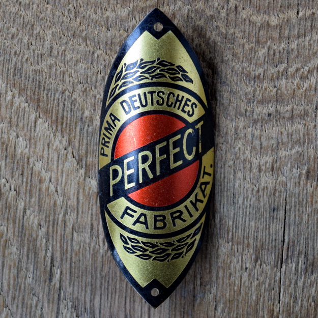 Steuerkopfschild PERFECT, 30er Jahre, Originalschild aus Sammlungsbestand, Lochabstand 72 mm