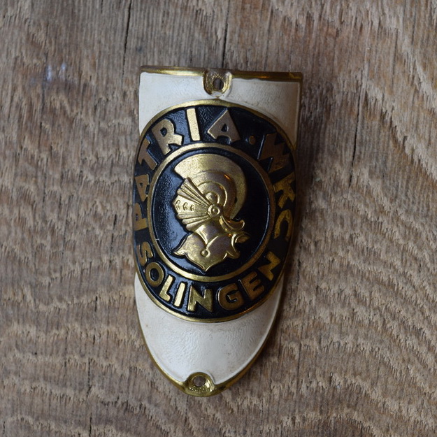 Steuerkopfschild Patria WKC, 30-50er Jahre, Originalschild aus Sammlungsbestand, Lochabstand 61 mm