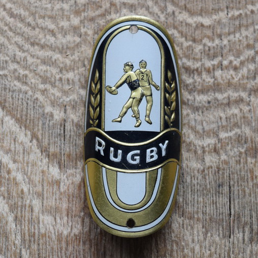 Steuerkopfschild Steuerkopfschild Rugby, 30-50er Jahre, Originalschild aus Sammlungsbestand, Lochabstand 59 mm