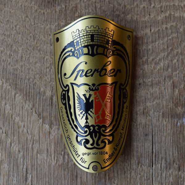 Steuerkopfschild Sperber (Endler und Kumpf Minden), 20-30er Jahre, Originalschild aus Sammlungsbestand
