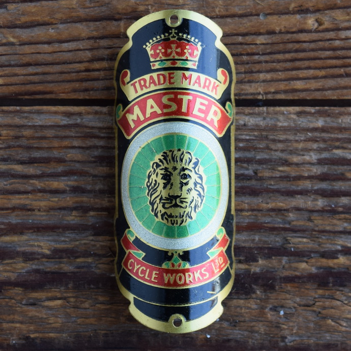 Steuerkopfschild TRADE MARK MASTER, 50er Jahre, Originalschild aus Sammlungsbestand, Lochabstand 70 mm Ideal für den passenden Fahrradoldtimer oder die Sammlervitrine. Zustand siehe Bild.