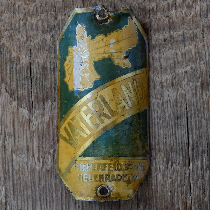 Steuerkopfschild VATERLAND, 30er Jahre, Originalschild aus Sammlungsbestand, Lochabstand 58 mm