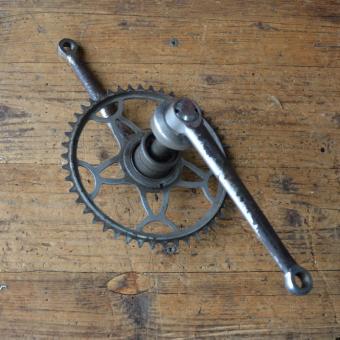 Tretlager Glockenausführung "Universal" 30er bis 50er Jahre, Schalen 40,5 mm innen, Achslänge 130 mm, Kurbellänge 175 mm