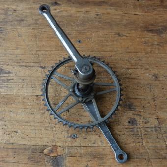 Hinweis zum Zustand: Die Tretlager sind unrestauriert, in der Substanz aber ok. Optik und Zustand der Zähne, siehe Bilder. Die Konen und Lager müssen, soweit überhaupt dabei und je nach Anspruch an den technischen Zustand, ggf. überholt/ergänzt oder ausgetauscht werden. Ersatzteile können wir für viele Typen gegen Berechnung liefern.