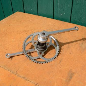 Hinweis zum Zustand: Die Tretlager sind unrestauriert, in der Substanz aber ok. Optik und Zustand der Zähne, siehe Bilder. Die Konen und Lager müssen, soweit überhaupt dabei und je nach Anspruch an den technischen Zustand, ggf. überholt/ergänzt oder ausgetauscht werden. Ersatzteile können wir für viele Typen gegen Berechnung liefern.