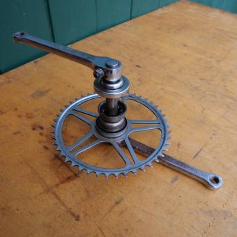 Tretlager in Keilausführung, komplett, passend für Rahmen mit Standardeinbaumaß 40 x 70 mm Hinweis zum Zustand: Die Tretlager sind unrestauriert, in der Substanz aber ok. Optik und Zustand der Zähne, siehe Bilder. Die Konen und Lager müssen, soweit überh
