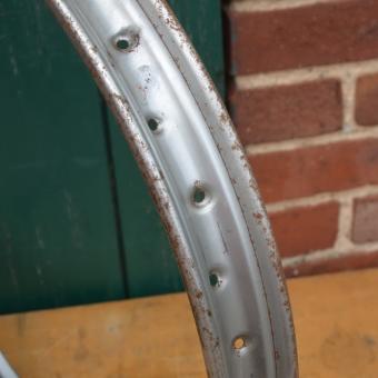 Felge 19 x 1.50 (23 x 2,50), silber, 36-loch, Bohrungen 5 mm, Breite 54 mm, Alte Neuware mit Patina