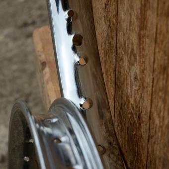 Felge Moped 23 x 2,00 (1.20-19) verchromt, 36 Loch, gepunzt, 38 mm breit, Kastenprofil m. Bremsflanke, glatte Ausführung der 50-70er Jahre.