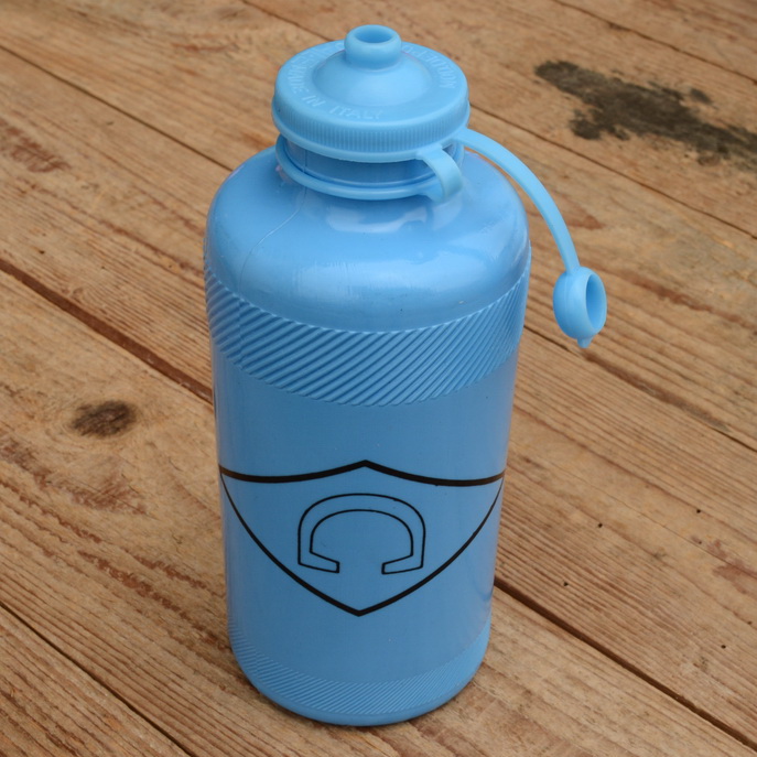 Trinkflasche " C ", hell blau, Kunststoff, original Flasche von AL.E Torino aus rarem Altbestand, 70/80er Jahre