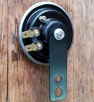 Hupe für Motorrad / Motorfahrrad / Moped, 12 Volt, klassische Ausführrung, gelocht, D=70mm, Halterung Metall schwarz