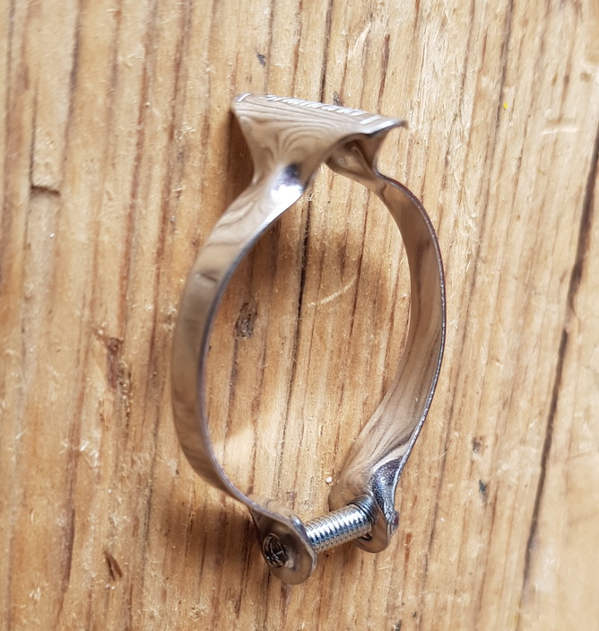 Rahmenschelle SHIMANO , verchromt, alte Neuware, 1Stck., ca. 25,5 - 28 mm, für die Bremszugführung am Oberrohr von Stahlrahmen-Klassikern