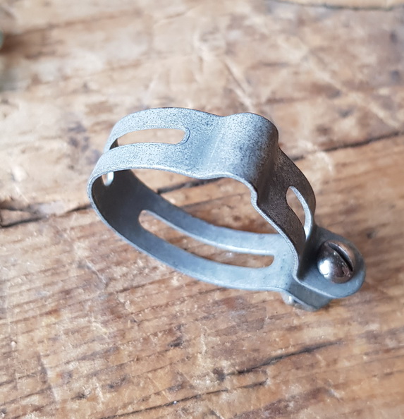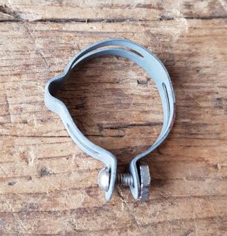 Rahmenschelle , orig. 30-50er Jahre, verchromt, alte Neuware, ggf. leichte Patina, 1Stck. incl. Schraube, ca. 25,5 - 26 mm, für die Zugführung an Stahlrahmen-Klassikern