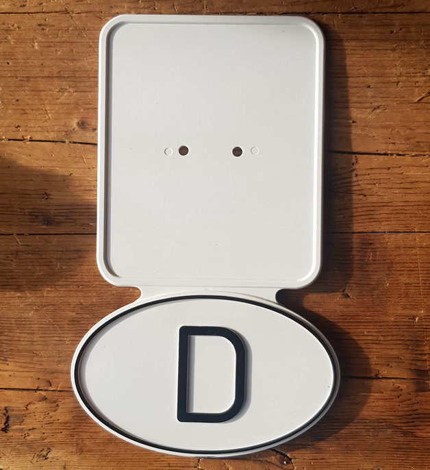 Kennzeichen Unterlage , MOPED, 70-80er Jahre, Kunststoff weiß mit D-Zeichen, orig. aus Altbestand, NOS, rar