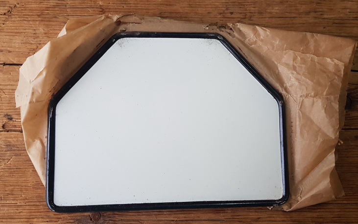 Kennzeichen hinten, kleine Ausf. weiß m. schwarzem Rand, passend für 60/74/ 98 ccm Motorfahrrad, HiMo's etc., B=160mm/H=120mm. Blanco zum selbstbeschriften, orig. alte Neuware mit ggf. leichter partieller Lagerpatina, selten zu bekommen, kleiner Restbestand der 30-50er Jahre..