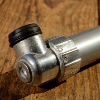 Luftpumpe f. Moped/Motorrad, L: 295-305 mm , Blech, silber lackiert, u.a. passend für div. NSU Quickly und andere Mopeds/Motorräder.