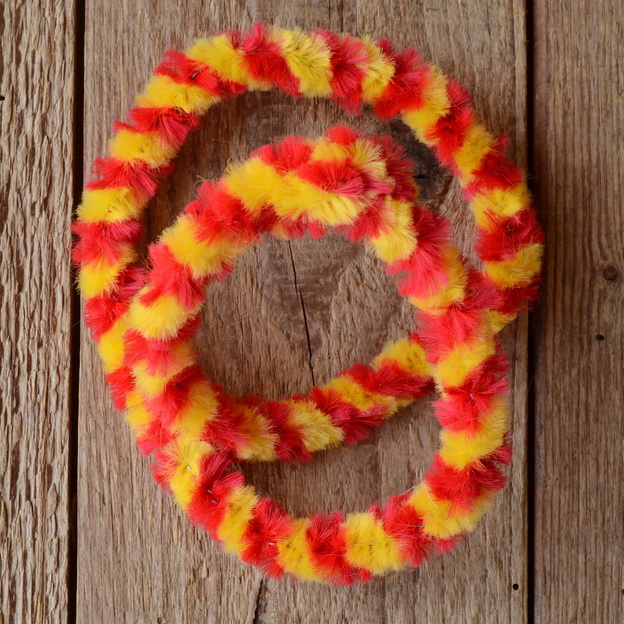 Nabenputzring, rot-gelb, flauschig, L=56 cm, für Moped und Fahrrad, Drahteinlage, ablängbar