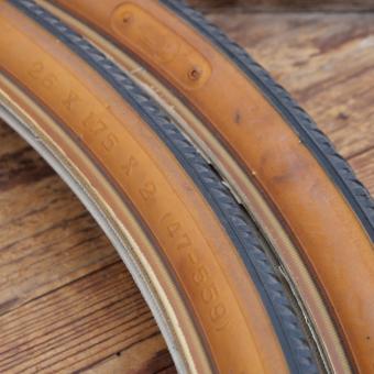 Reifensatz Fahrrad, LHR Nylon, 26 x 1,75 x 2 (47-559), Draht, original 70e/80er Jahre, Lauffläche schwarz,