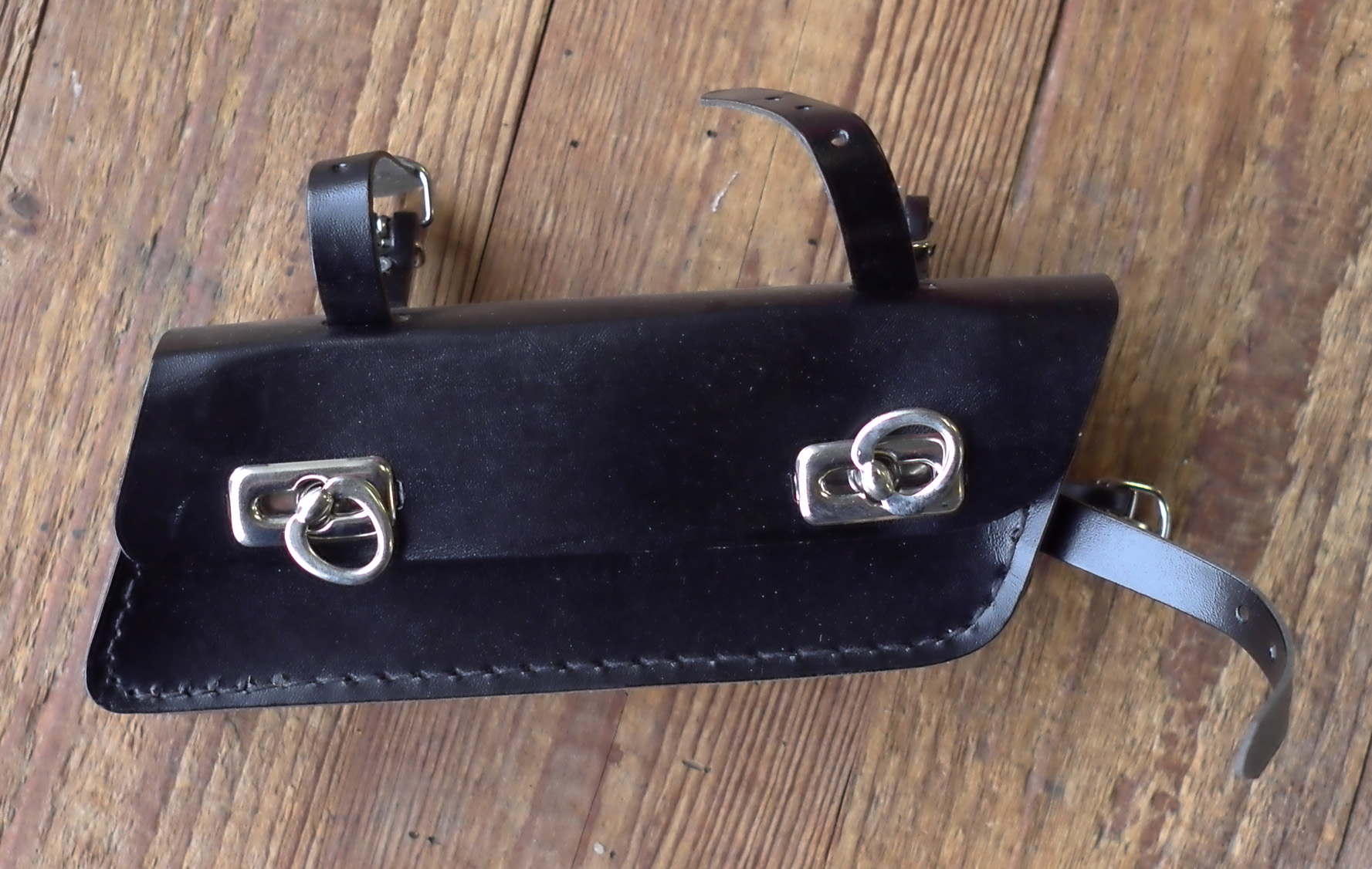 Werkzeugtasche, Lefa, schwarz, Trapezform, Beschläge vernickelt, passend für viele Herrenradklassiker