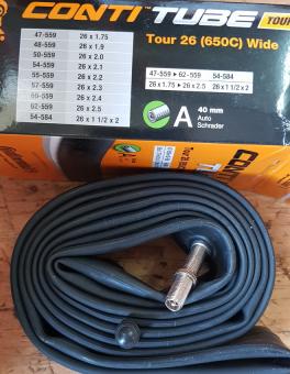 Fahrrad - Schlauch, Continental Tour 26 (650C) WIDE(47-559 - 62-559 zudem 54-584) Autoventil 40 mm