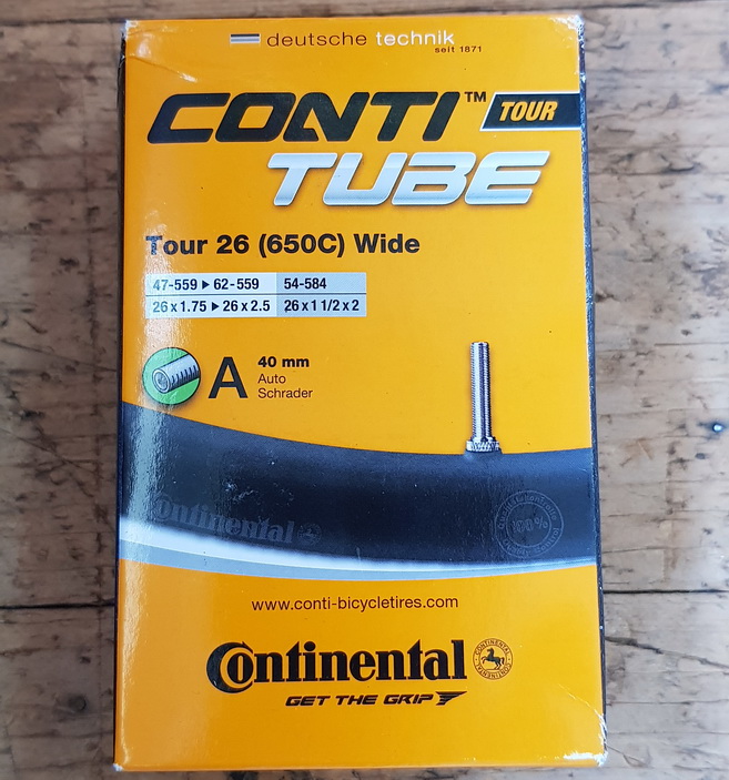 Fahrrad - Schlauch, Continental Tour 26 (650C) WIDE(47-559 bis 62-559, zudem 54-584), alte Bez: ( 26 x 1.75 bis 26 x 2.50, zudem 26 x 2 x 1 1/2) Autoventil 40 mm. Geeignet für MTB, Tourer, Motorfahrrad etc.