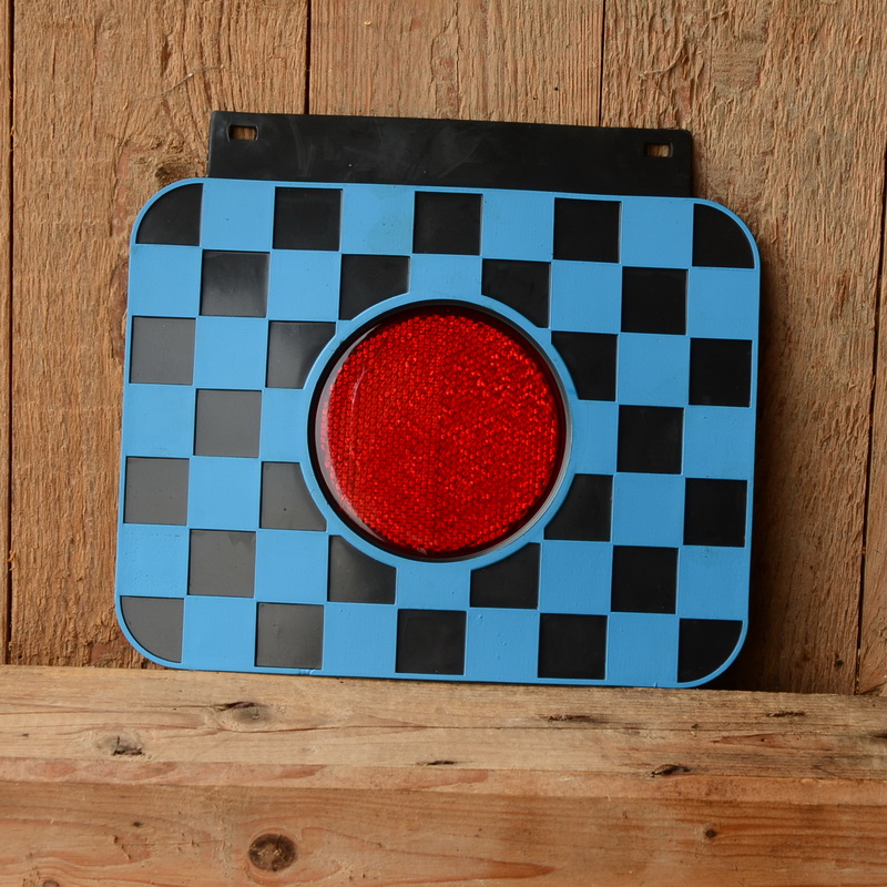 Schmutzfänger kariert, gross, blau-schwarz, mit Reflektor, orig. Altbestand
