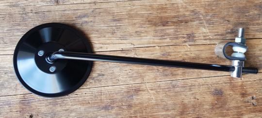 Spiegel Moped-Motorrad, schwarz, Anbau links, Glas 100 mm, Stange 275 mm, Durchmesser 9 mm, incl. Chromschelle mit Gummieinlage.